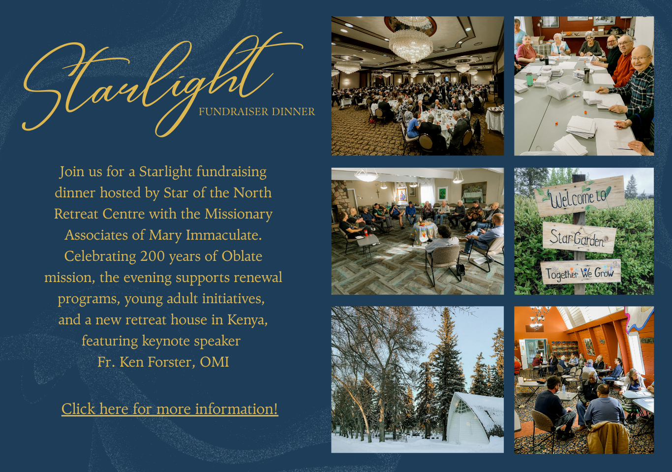 Whether you want time out from a hectic schedule, a perfect setting for your next business or group function, or sacred space to heal and renew, Star of the North Retreat House is the place for you.